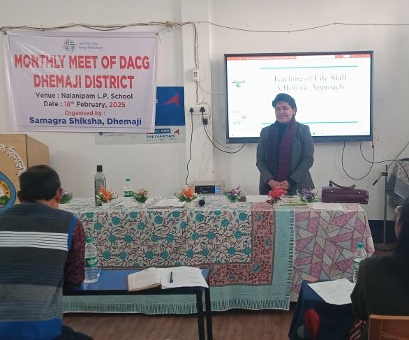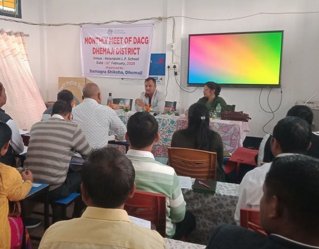 The DACG (District Academic Core Group) meeting for February 2025 was held at Nalanipam LPS, beginning with a Class I classroom observation. The meeting, chaired by Dr. Sanjib Kumar Phukan, ACS, ADC (Education), commenced with an address by Ms. Mausumi Baruah Bordoloi, Principal DIET & Member Secretary DACG, highlighting the need for collaborative efforts.