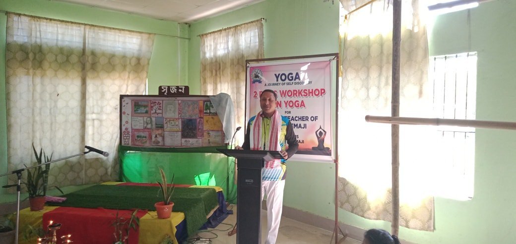 Yoga: A Journey of Self-Discovery. 2-Day Workshop at DIET Dhemaji for promoting mindfulness and well-being among student-teachers. The session started with opening remarks by Principal Mausumi Baruah Bordoloi and a welcome speech by Lecturer Indrajit Gam. Sri Pulen Das from Arogya Yoga Kendra, Dhemaji led the session, introducing yoga postures, breathing techniques, and meditation to enhance focus, stress relief, and physical health