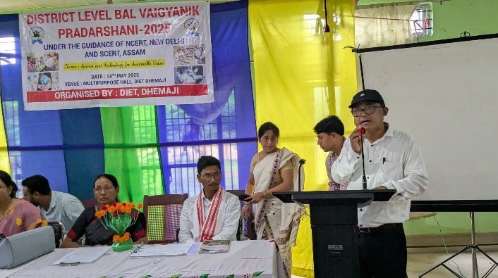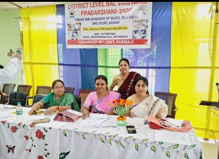 Under the guidance of NCERT, New Delhi and SCERT, Assam, the District Level Bal Vaigyanik Pradarshani 2025 was successfully organized at DIET, Dhemaji, showcasing the creativity and scientific spirit of school students from across the district. Esteemed personalities Dr. Annajyoti Gogoi (Retd. Vice Principal, Dhemaji College), Smt. Labanya Lahan Chutia (Coordinator, Dhemaji Block), and Sri Pradip Kr. Gogoi (Coordinator, MS Block) were felicitated and served as judges for the exhibition. Sri Junish Patir, Senior Lecturer, DIET Dhemaji, elaborated on the objectives of the programme. A total of 43 innovative exhibits were showcased by participants from various schools. After thorough evaluation, the following five exhibits were selected to represent Dhemaji district at the State Level Bal Vaigyanik Pradarshani 2025: